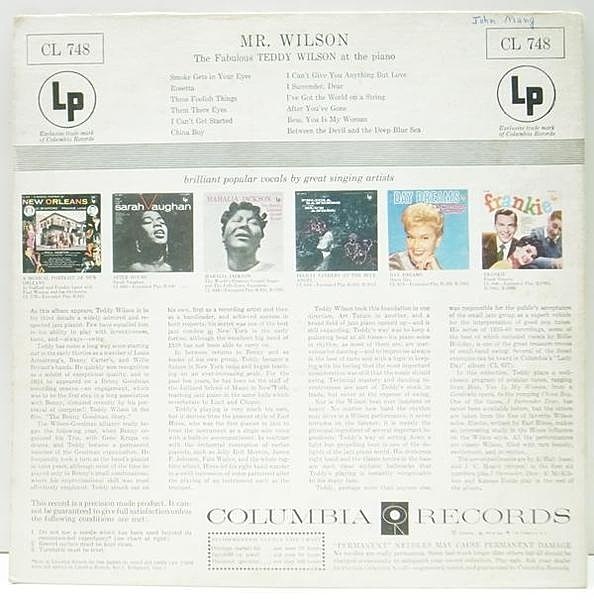 テディ・ウィルソン初期のソロやトリオ演奏による1941年~1950年の貴重な録音を集めたスタンダード集。当時未発表だった "I Surrender, Dear"、冒頭の "Smoke Gets In Your Eyes/煙が目にしみる" 等々、名曲群が並んでます。