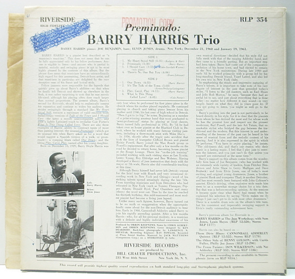BARRY HARRIS(p) JOE BENJAMIN(b) ELVIN JONES(ds)