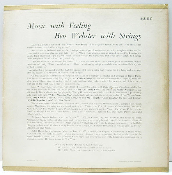 ラルフ・バーンズのアレンジによるストリングスを交えた何ともウォーミングな伴奏と溶け合ったワンホーンの優美なバラッド・テナーを満喫できる最高の一枚です。