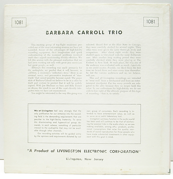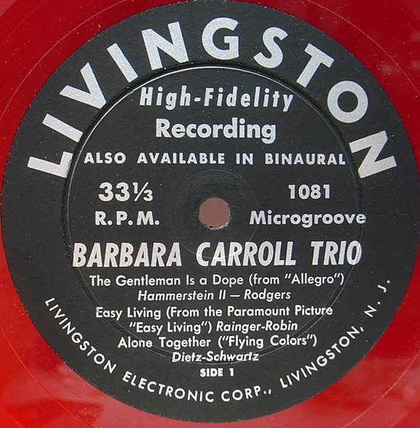 女流ピアニスト、バーバラ・キャロルが小レーベルLivingstonに残したピアノトリオの傑作。