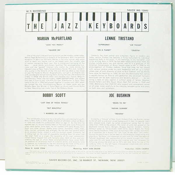 当時Savoyに所属の4人の白人ピアニストによるそれぞれのリーダー・セッションを収めた作品。