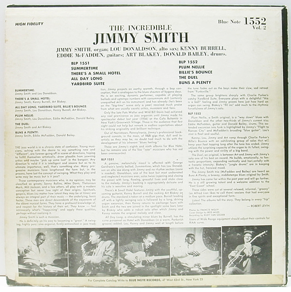 JIMMY SMITH(org LOU DONALDSON(as) KENNY BURRELL, EDDIE McFADDEN(g) ART BLAKEY, DONALD BAILEY(ds)