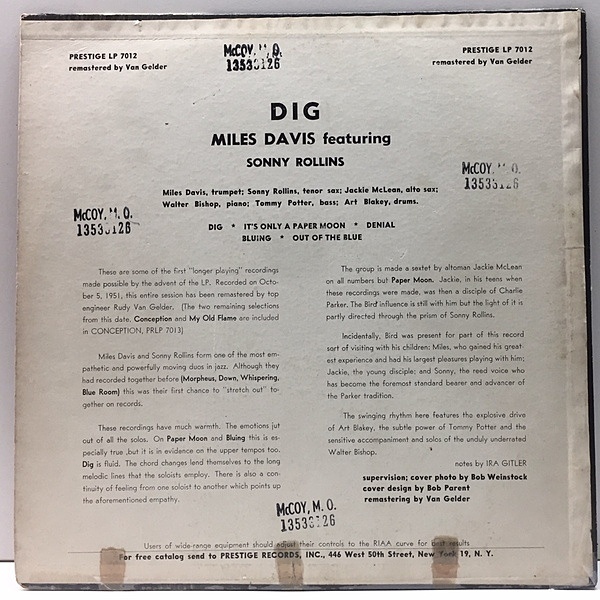 MILES DAVIS(tp) SONNY ROLLINS(ts) JACKIE McLEAN(as) WALTER BISHOP(p) TOMMY POTTER(b) ART BLAKEY(ds)