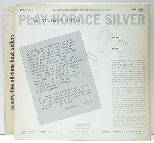 ウェスを抜いたモンク、バディのモンゴメリー兄弟が率いるバンド=『マスターサウンズ』によるホレス・シルヴァー集。