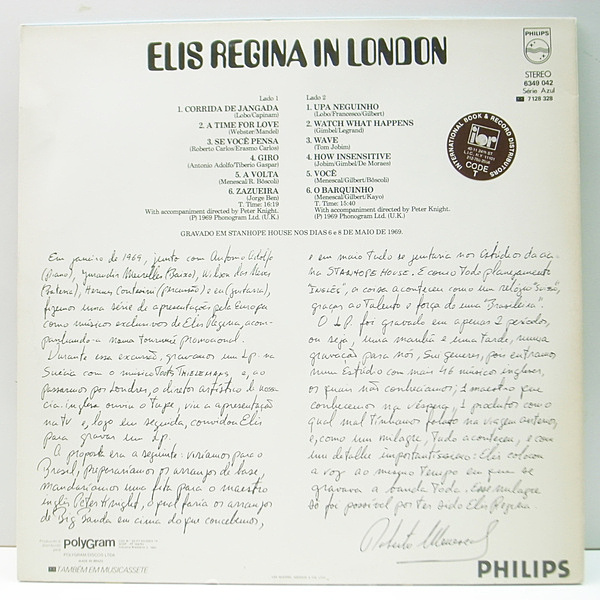 36歳という若さで亡くなったブラジルの歌姫エリス・レジーナが若かりし24歳に渡欧した際、ロンドンに立ち寄り録音したものですが、'69年の当時多忙を極めるエリスは、殆ど初顔合わせだったと思われるオーケストラと僅か2日でレコーディングしたという驚きのアルバムです。