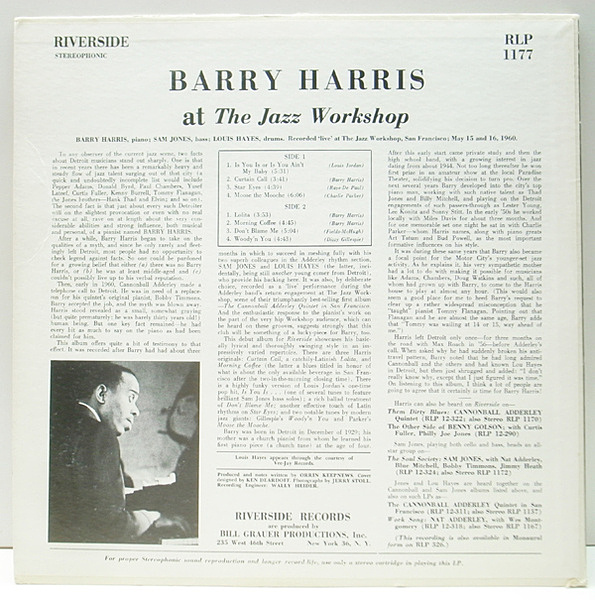 サム・ジョーンズ、ルイ・ヘイズとのトリオ演奏で、バリー・ハリスの作品の中でも特に人気の高いサンフランシスコでのライヴ・パフォーマンスを収めたクールなピアノトリオ本命盤。BARRY HARRIS(p) SAM JONES(b) LOUIS HAYES(ds)