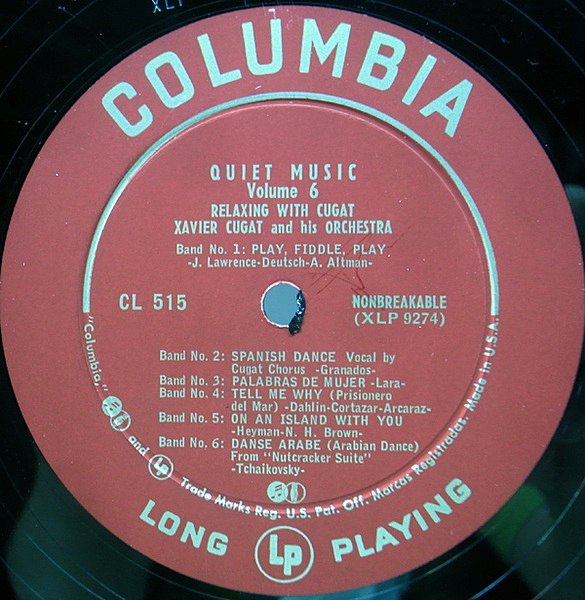 フラット 重量225g MONO 1stマルーン 深溝 USオリジナル XAVIER CUGAT Quiet Music, Relaxing With ~ ('52 Columbia) 美女ジャケット!