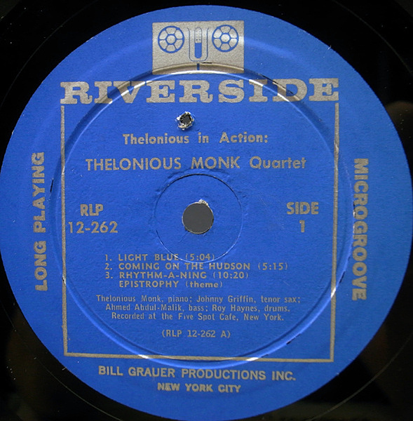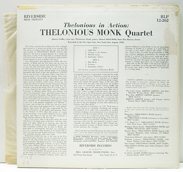 美盤!! MONO 青ラージ 深溝 THELONIOUS MONK QUARTET With JOHNNY GRIFFIN Thelonious In Action (Riverside RLP 12-262) Five Spot Live
