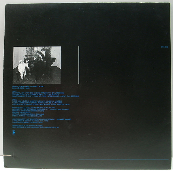 極美盤!! FRANCE 仏 オリジナル MICHEL PETRUCCIANI, RON McCLURE Cold Blues ('85 Owl) ミシェル・ペトルチアーニとのデュオ作品