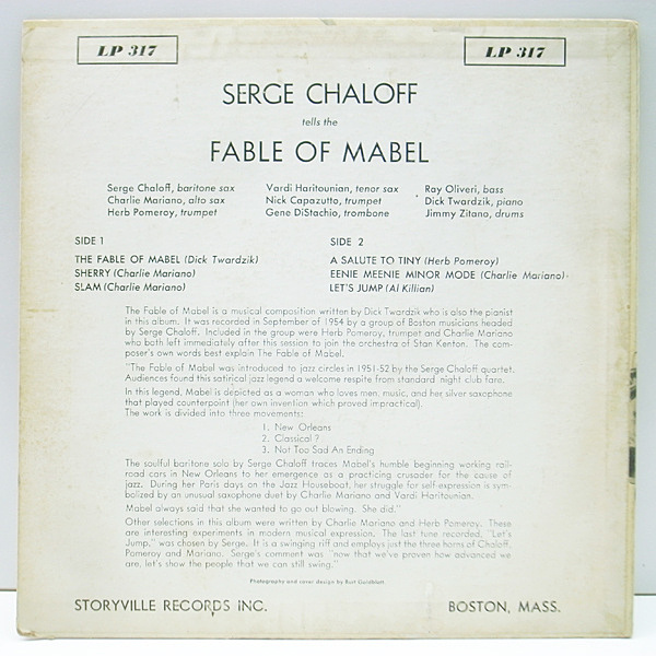 レア 10'' FLAT MONO 深溝 USオリジナル SERGE CHALOFF Plays The Fable Of Mabel (Storyville LP 317) サージ・チャロフ初期のリーダー作