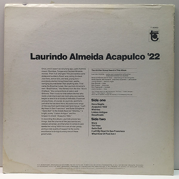 サミー・デイヴィスJr.とのデュオやゲッツとの共演でも知られるギタリスト、ローリンド・アルメイダ。ボブ・クーパー、ハワード・ロバーツ、アル・ビオラ、ジミー・ロウルズ、シェリー・マンらウエストコーストを代表する精鋭ジャズメンとコラボしたボサノヴァ色濃いめのボサ・ジャズ・アルバム。