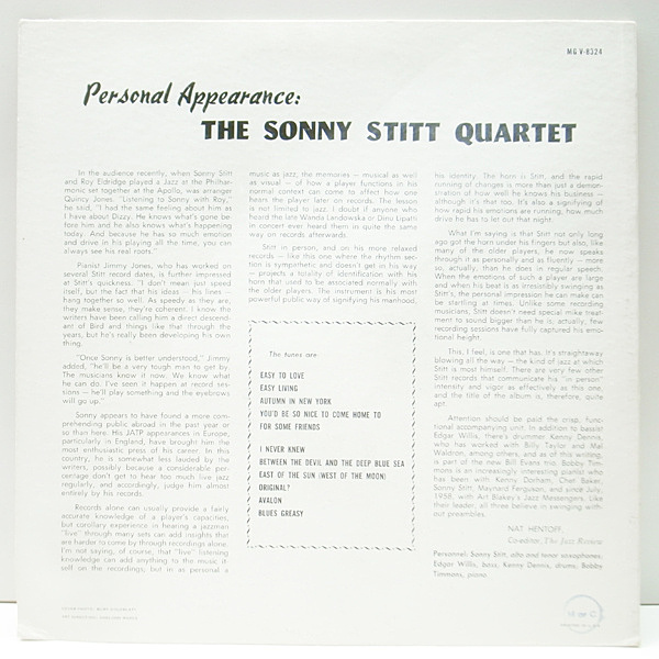 レコードメイン画像:レアな美盤!! MONO 1stトランペッター 深溝 USオリジナル SONNY STITT QUARTET Personal Appearance (Verve MG V-8324) Bobby Timmons 参加
