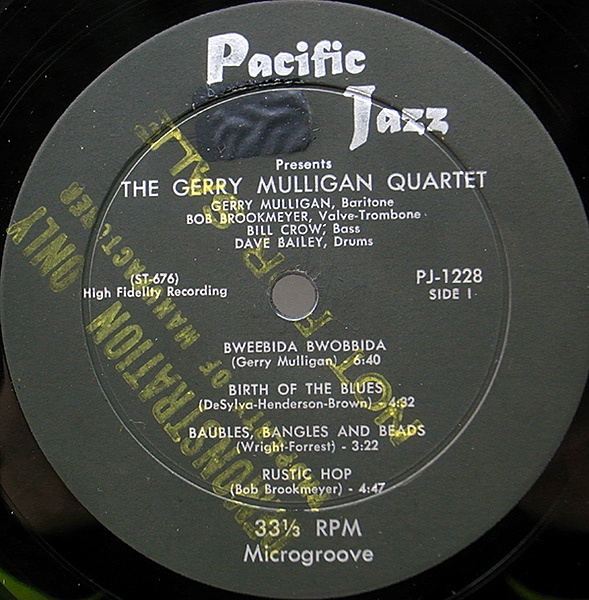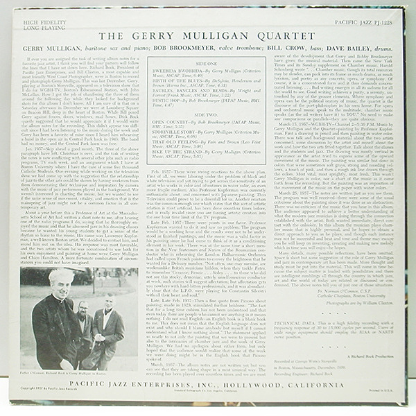 Gerry Mulligan(bs/p) Bob Brookmeyer(v-tb) Bill Crow(b) Dave Bailey(ds)