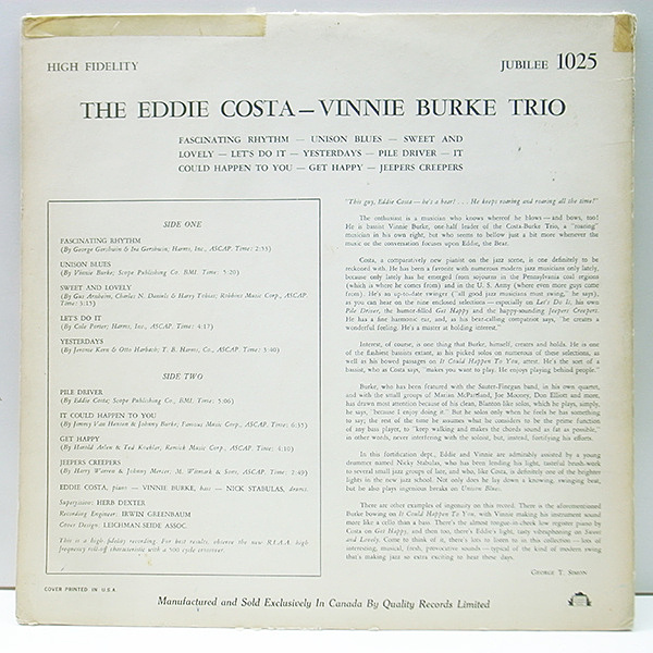 EDDIE COSTA(p/vib[A3]) VINNIE BURKE(b) NICK STABULAS(ds)