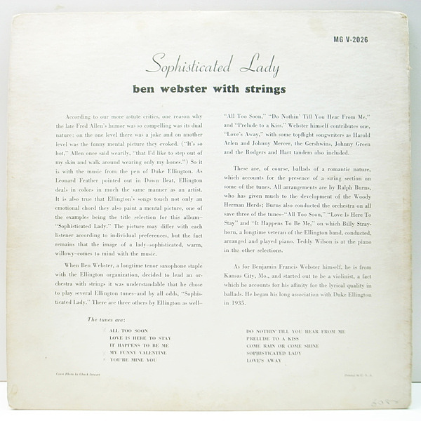 ラルフ・バーンズ/ビリー・ストレイホーンそれぞれのアレンジによるストリングスを交えた何ともウォーミングな伴奏と溶け合ったベン・ウェブスター・ワンホーンの優美なバラッド・テナーを満喫できる最高の一枚です。