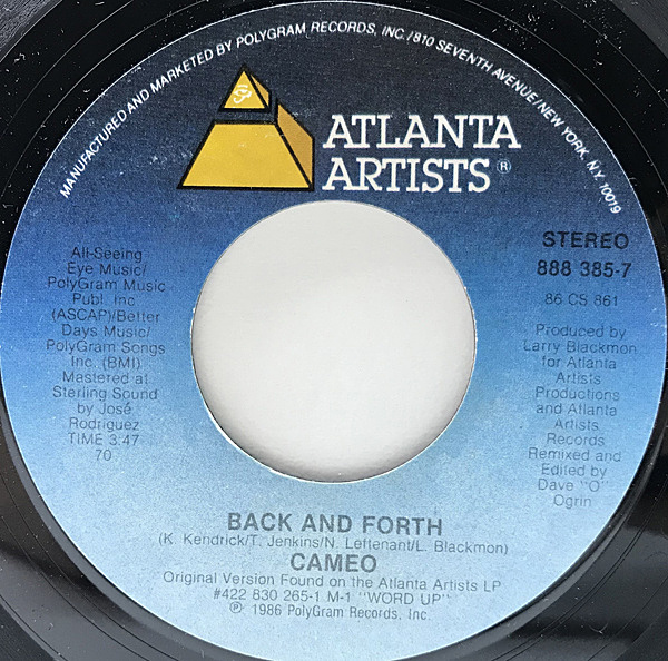 AALIYAHネタ 美盤 7インチ STERLNG刻印 USオリジナル CAMEO Back And Forth / You Can Have The World ('86 Atlanta Artists) サンプリング