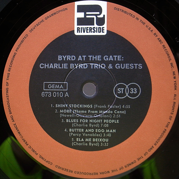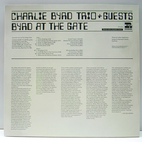 美品 ドイツ・コーティング仕様 CHARLIE BYRD At The Gate (Riverside 673 010) '68年 独盤 Seldon Powell, Clark Terry 参加