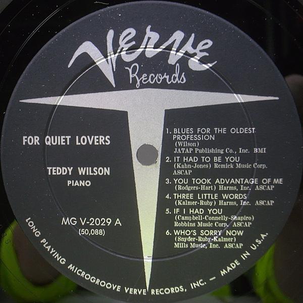 ヴァーヴ仕様の人気ジャケットはもとより、無駄を削ぎ落とした様なシンプル・イズ・ベストな中間派サウンドともに素敵な永年人気の高い一枚です。Teddy Wilson(p) Milt Hinton(b) Jo Jones(ds)