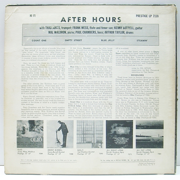 Thad Jones(tp) Frank Wess(ts/fl) Kenny Burrell(g) Mal Waldron(p) Paul Chambers(b) Arthur Taylor(ds)