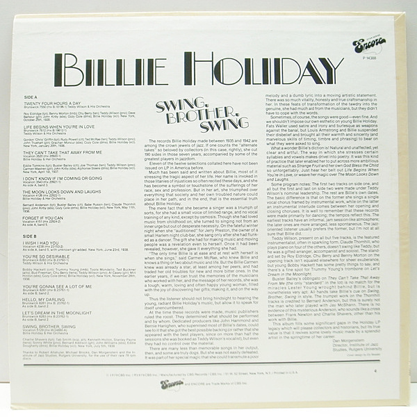 稀代のシンガー、ビリー・ホリデイ全盛期とも言える1935〜1939の名唱をたっぷり収めた企画もの。