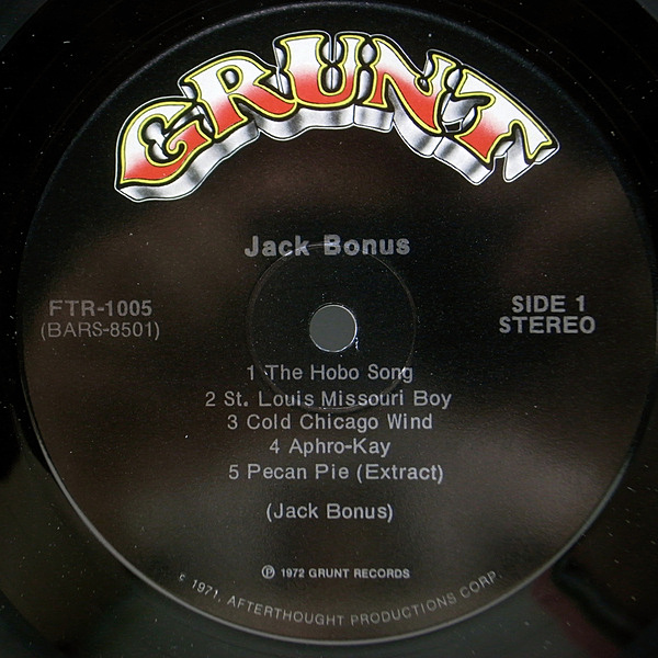 グレイトフル・デッド・ファミリーのセッション・ミュージシャン、ジャック・ボーナスがジェファーソン・エアプレインのレーベルGruntに残した唯一のアルバム。自身のテナーを交え正統派ラテン・ジャズを披露する異色の "Ay Que Lyn"、マンドリンや灰皿パーカッションを用いたエキゾ・サウンドを展開する変態カントリー・ポップ "Aphro-Kay" など、サイケ・ロック/ブルース/フォークを軸に摩訶不思議なジャック・ワールドを展開しております。