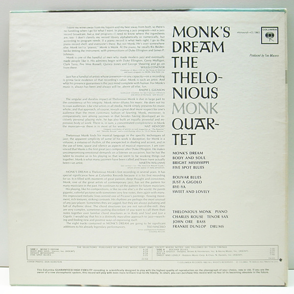 THELONIOUS MONK(p) CHARLES ROUSE(ts) JOHN ORE(b) FRANKIE DUNLOP(ds)