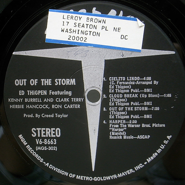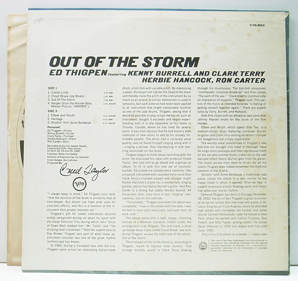 美盤!! VANGELDER刻印 USオリジナル ED THIGPEN Out Of The Storm ('66 Verve) Clark Terry, Herbie Hancock, Kenny Burrell, Ron Carter