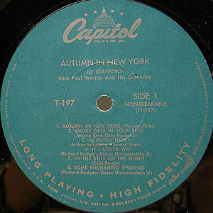 トミー・ドーシー楽団で活躍した実力派シンガー、ジョー・スタッフォードがポール・ウェストン指揮によるオーケストラと共演した初期の佳作。控えめで気品に満ち溢れた優美な伴奏は一層ジョーを引き立てております。スタンダード中心の選曲も抜群です。