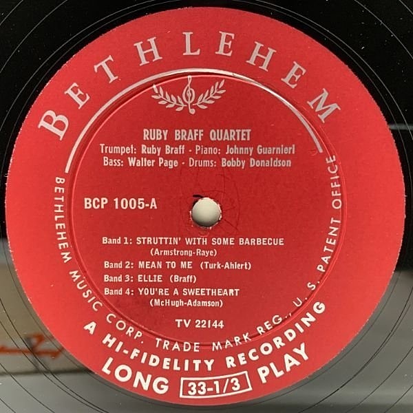 中間派スタイルの白人トランペッターの名手ルビー・ブラフのベツレヘム作品。
