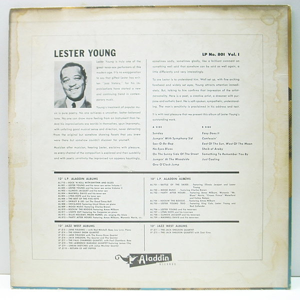 元はSP音源となる1940年代の吹き込みを全13曲たっぷり収めた非常にレアなAladdin12"LPです。