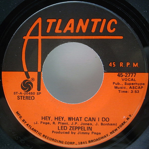 美盤!! 7インチ USオリジナル LED ZEPPELIN 移民の歌 Immigrant Song / Hey, Hey, What Can I Do ('70 Atlantic 45-2777) 45 RPM