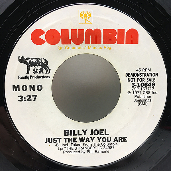 '77年発表の名作アルバム『The Stranger』に収録の名曲 "素顔のままで" の貴重なプロモ・カット!7"プロモ・オンリーとなる『MONO』と通常のSTEREOをカップリングしたセイム・フリップ仕様で、Lp(4:50)とは違う3:27エディットVer.です。