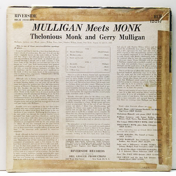 強烈な個性のセロニアス・モンクとジェリー・マリガンのバリトンが相俟った異色の共演盤です。