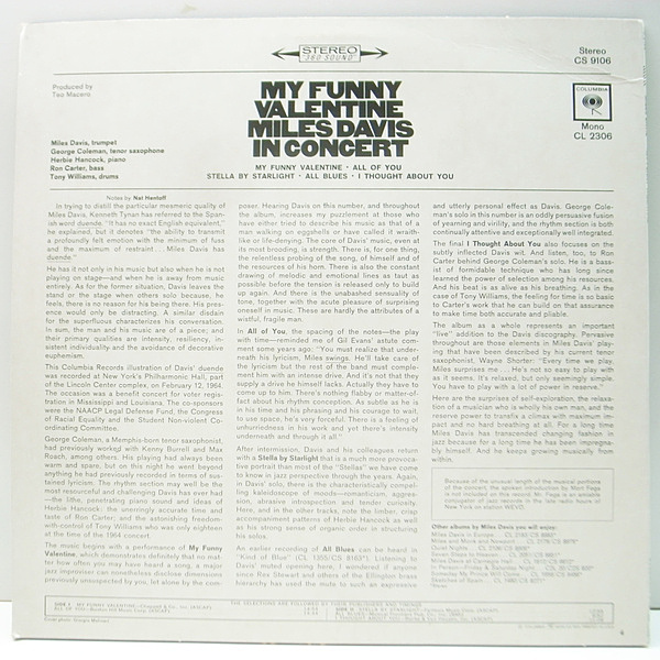 MILES DAVIS(tp) GEORGE COLEMAN(ts) HERBIE HANCOCK(p) RON CARTER(b) TONY WILLIAMS(ds)