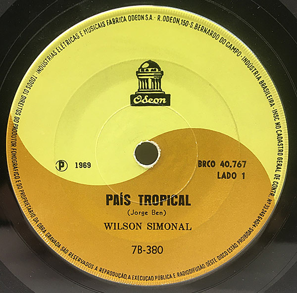 ブラジルのエンターテイナー/シンガー、ウィルソン・シモナルの'69年シングル。