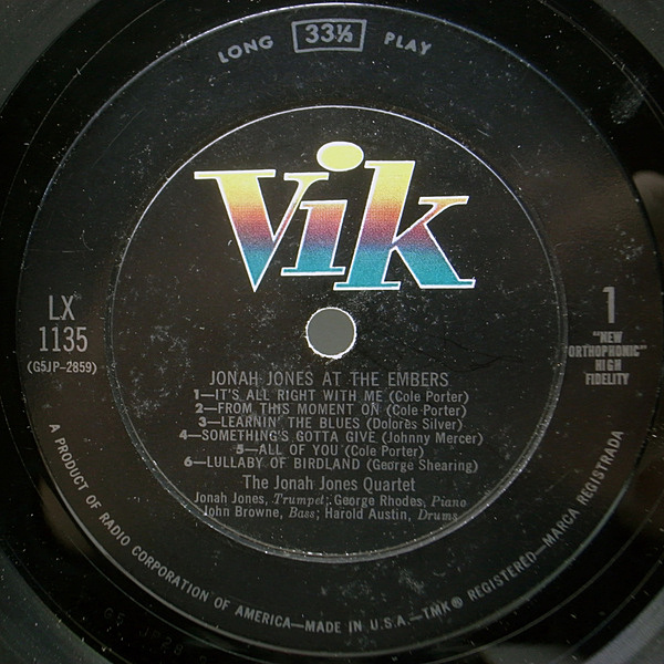 Jonah Jones(tp) George Rhodes(p) John Browne(b) Harold Austin(ds)