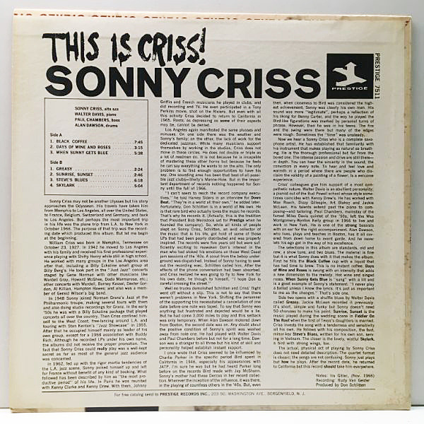 Sonny Criss(as) Walter Davis(p) Paul Chambers(b) Alan Dawson(ds)