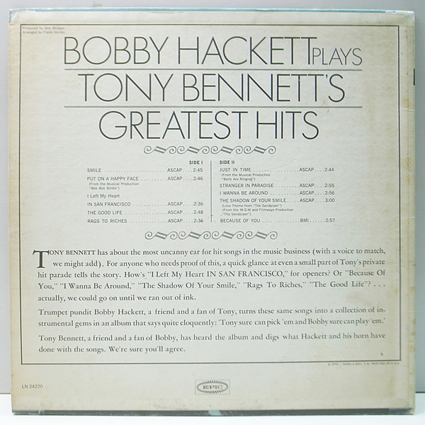 アレンジはフランク・ハンター。タイトルのようにトニー・ベネットの愛奏曲を採り上げたドリーミィなスタンダード集です。