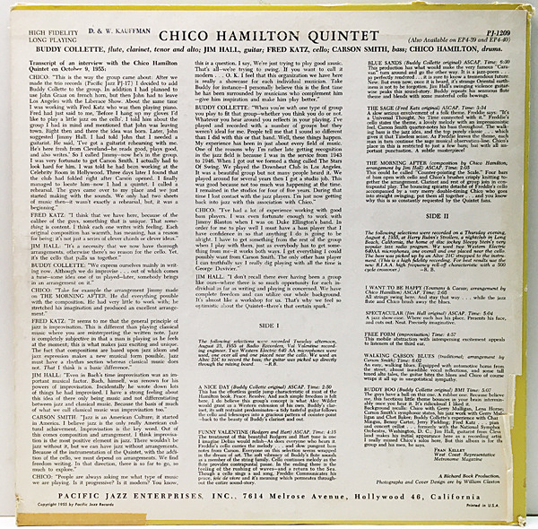 BUDDY COLETTE(as/ts/cl/fl) JIM HALL(g) FRED KATZ(cello) CARSON SMITH(b)