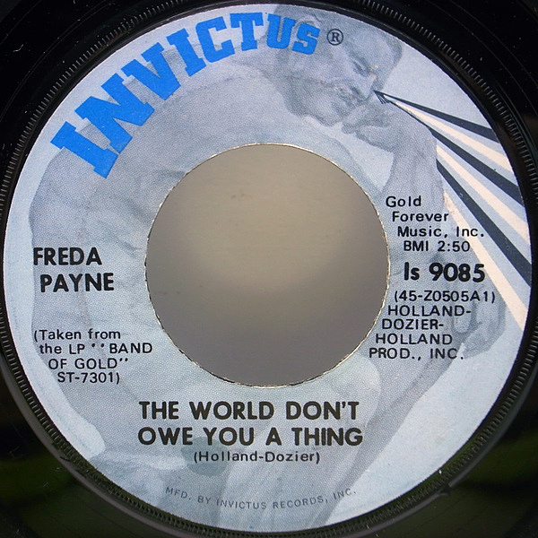 ザ・シュープリームスのメンバー、シェリー・ペインのお姉さんでもある女優/シンガー、フリーダ・ペイン。ホーランド=ドジャー=ホーランドが手がけた爽快なノーザンをカップリングしたフリーダのソウル期'71年シングル。