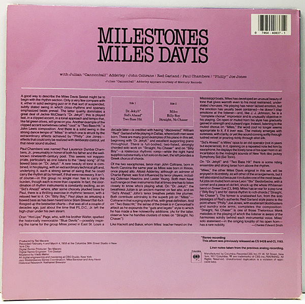 Miles Davis(tp) John Coltrane(ts) Cannonball Adderley(as) Red Garland(p) Paul Chambers(b) Philly Joe Jones(ds)