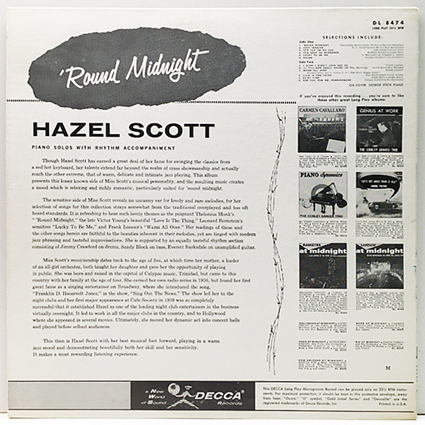 トリニダード生まれのニューヨーク育ち。10代からジャズバンドやラジオ等でも演奏していた早熟の黒人女流ピアニストの旗手、ヘイゼル "ドロシー" スコットによる渡欧前にアメリカの地で吹き込んだインティメイトなスタンダード集。初期の貴重な録音です。