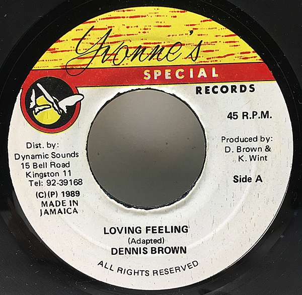 ジャマイカはキングストン出身のレゲエ・シンガー、デニス・ブラウンの素晴らしいスウィート・ラヴァーズ "Loving Feeling" を収録した同年'89年発表のアルバム『Good Vibrations』からのカット7"!カップリングのダビーなヴァージョン共にナイス。