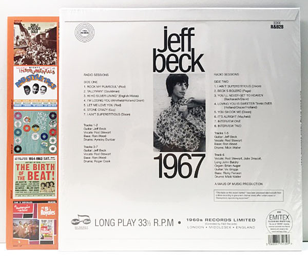 BECKをソロ・スターダムに押し上げた67年3月のシングル"HI HO SILVER LINING"での圧倒的ソロはもちろんのこと、68年8月のデビュー・アルバム『TRUTH』からは"I AIN'T SUPERSTITIOUS"2種、PAGEの"BECK'S BOLERO"、MUDDY WATERSクラシック"YOU SHOOK ME"等を披露、のちの代表曲"ROCK MY PLIMSOUL"、"LET ME LOVE YOU"などのRODのヴォーカルとBECKのガチンコ勝負が聞ける名演や、FOUR TOPSの"LOVING YOU IS SWEETER THAN EVER"に驚きのソフロ的BURT BACHARACHカヴァー"YOU'LL NEVER GET TO HEAVEN"などなど、未発表曲も収録しながらスタジオ盤に比べ鋭角的なギターを聞かせ、まさに元祖ハード・ロックと言われるようなラウドで迫力のあるパフォーマンスを魅せるファン必聴のステージです。ボーナスとしてROD STEWARTのSTEAMPACKETによるCURTIS MAYFIELDの"IT'S ALRIGHT"、JEFF BECKのインタビュー2種を追加した全15トラック。