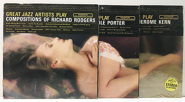 著名な作曲家であるリチャード・ロジャース/コール・ポーター/ジェローム・カーンそれぞれの佳曲を採り上げたコンセプチュアルなオムニバス・シリーズで、ビル・エヴァンス・トリオ、ソニー・ロリンズ、ブルー・ミッチェル、ウェス・モンゴメリーらレーベルを代表するミュージシャンによる好演が聴ける内容はもとより、ご覧のセクシーな美女のカットが3枚で一対となるコレクター心も擽る逸品!レアな連番3枚セットです。
