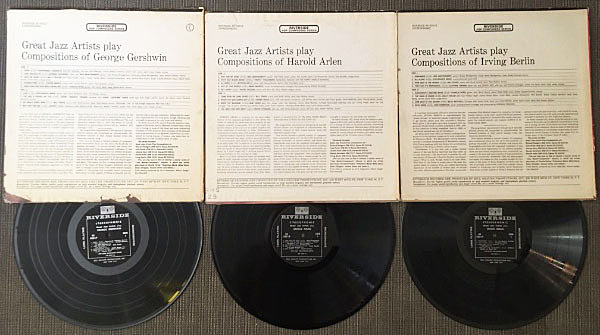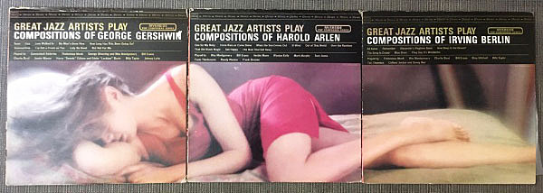 著名な作曲家であるジョージ・ガーシュウィン/ハロルド・アーレン/アーヴィング・バーリンそれぞれの佳曲を採り上げたコンセプチュアルなオムニバス・シリーズで、ビル・エヴァンス・トリオ、ブルー・ミッチェル、ウェス・モンゴメリーらレーベルを代表するミュージシャンによる好演が聴ける内容はもとより、ご覧のセクシーな美女のカットが3枚で一対となるコレクター心も擽る逸品!今回は連番3枚セットです。