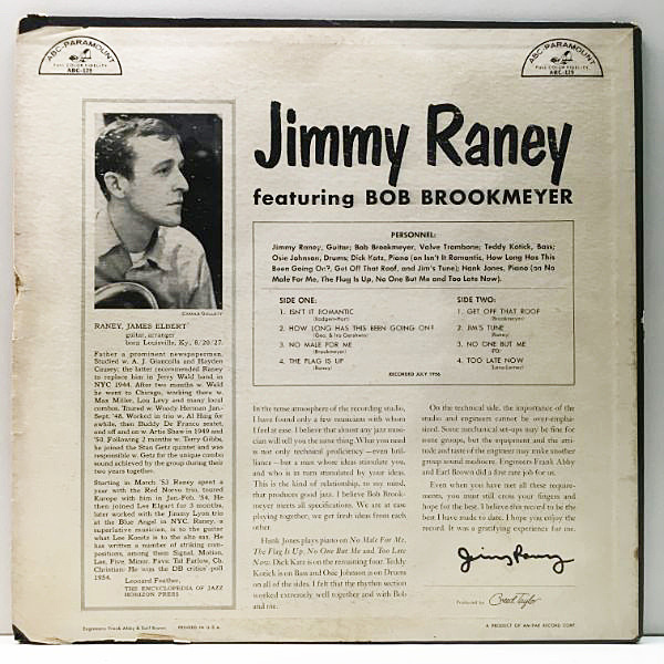 ボブ・ブルックマイヤーと共演したカルテット編成による名手ジミー・レイニーの傑作です。