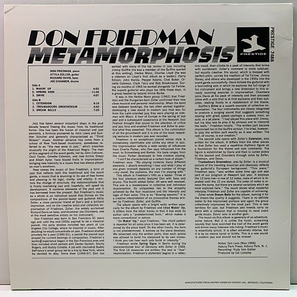 ビル・エヴァンスと並び称される叙情派ピアニスト、 ドン・フリードマン唯一のPrestige作品。