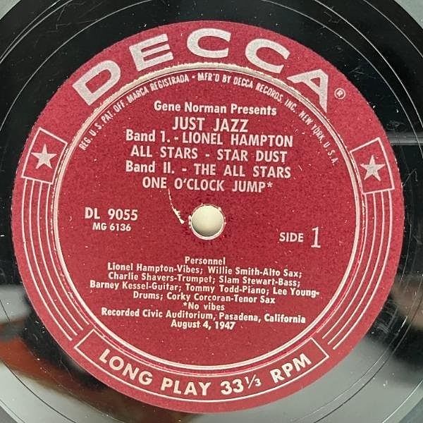 チャーリー・シェイヴァース(tp) ウィリー・スミス(as) バーニー・ケッセル(g)らスウィング時代を代表する名手たちによる15分にも及ぶ妙技は何とも心地良く『上がりのジャズ』とでも言いたくなるようなリラックス感が絶品です。コチラは10"『DL 7013』に2曲追加した12"LP仕様です。