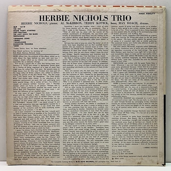 Herbie Nichols(p) Al McKibbon[A1-A5, B4], Teddy Kotick(b) Max Roach(ds)